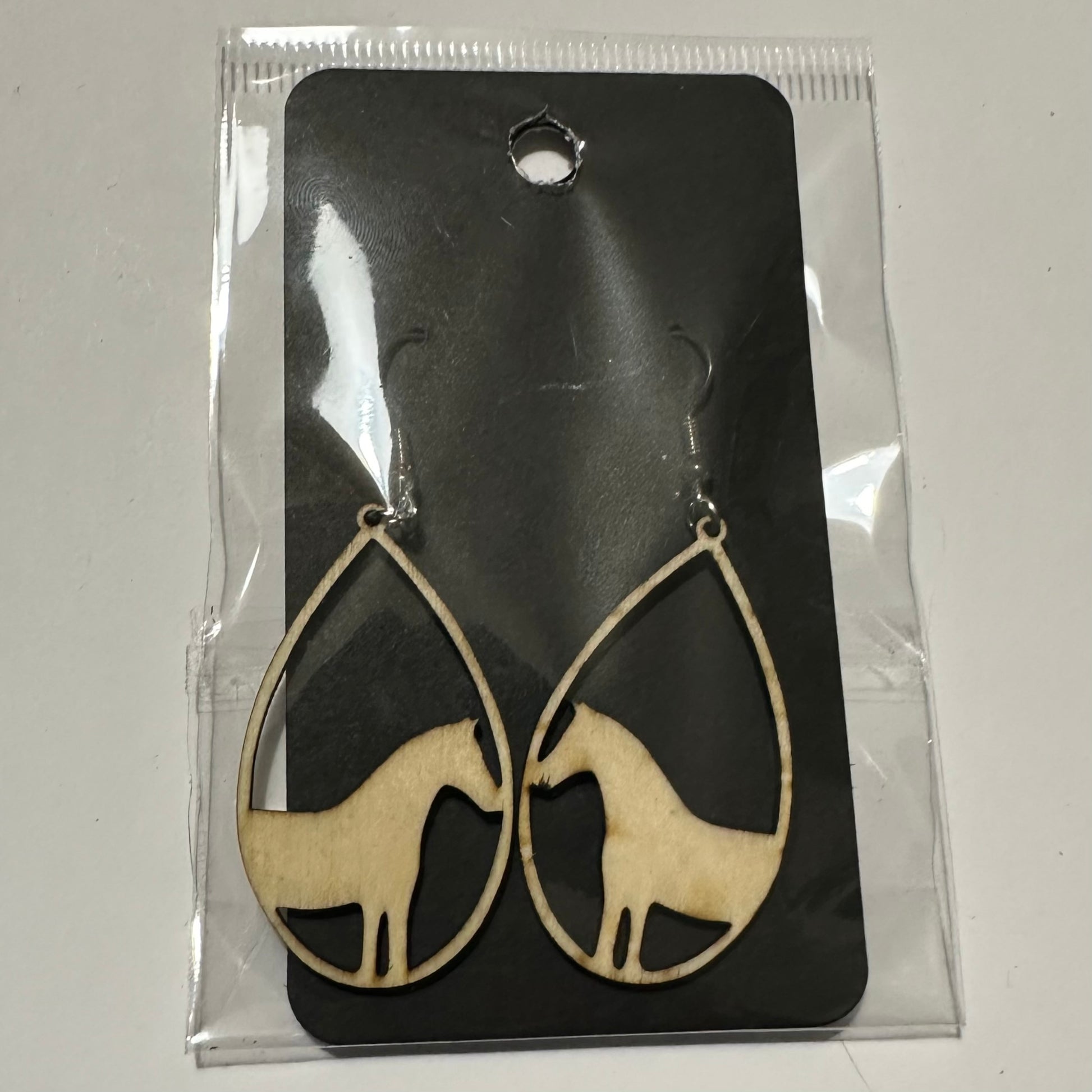 Puiset laserleikatut korvakorut. Koukut allergeeni vapaapa terästä. Korkeus noin 35mm.