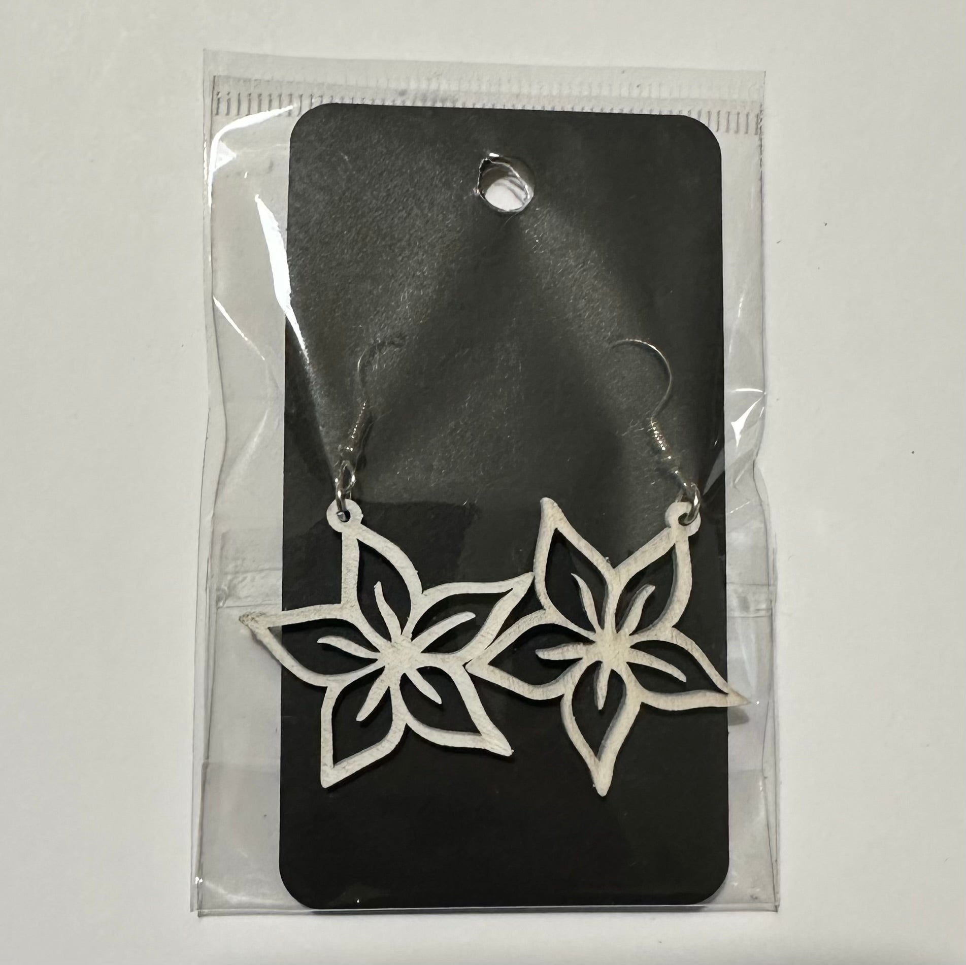 Puiset laserleikatut korvakorut. Koukut allergeeni vapaapa terästä. Korkeus noin 35mm.
