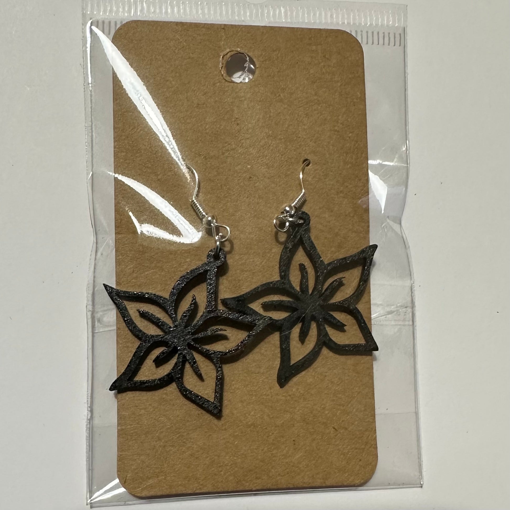 Puiset laserleikatut korvakorut. Koukut allergeeni vapaapa terästä. Korkeus noin 35mm.