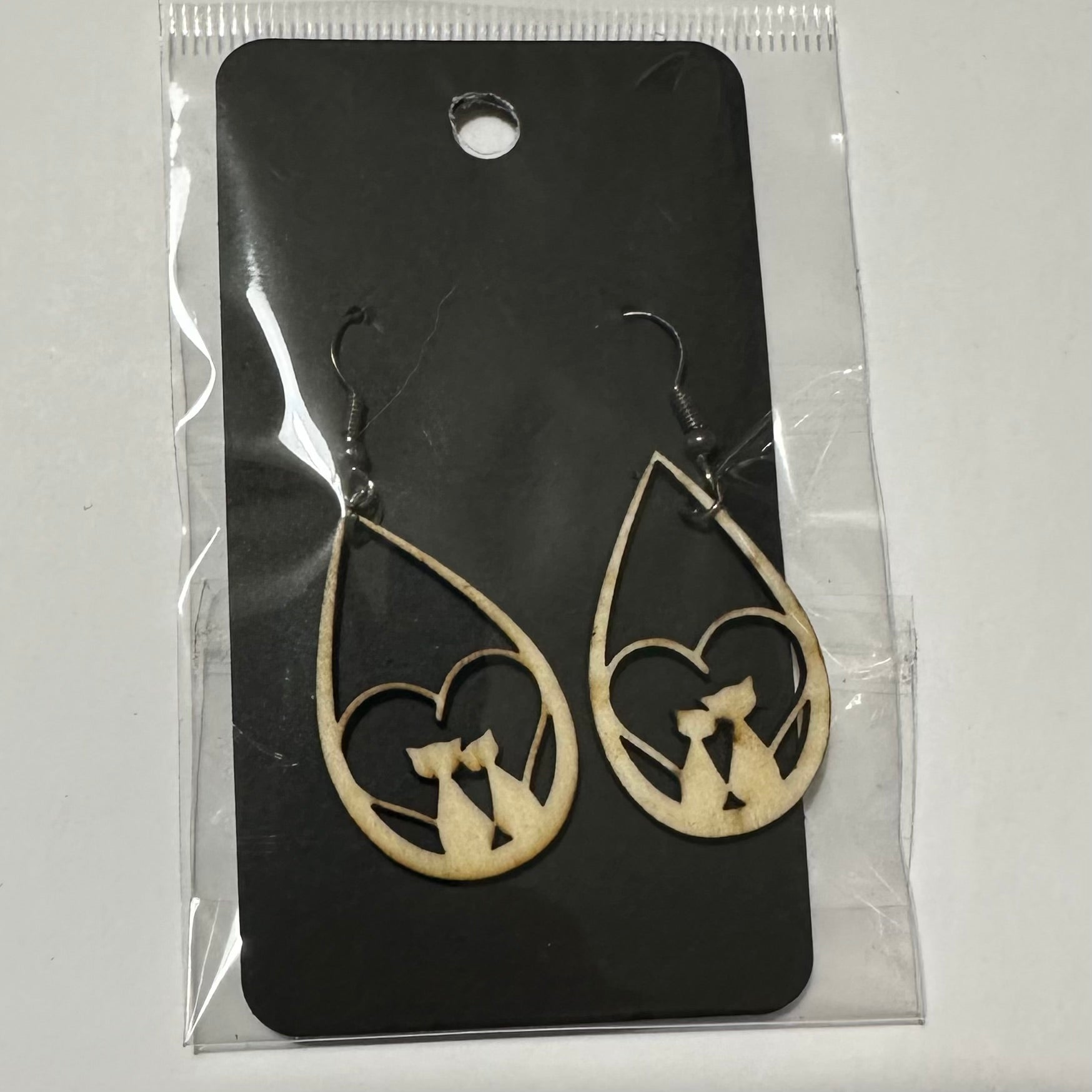 Puiset laserleikatut korvakorut. Koukut allergeeni vapaapa terästä. Korkeus noin 25mm.