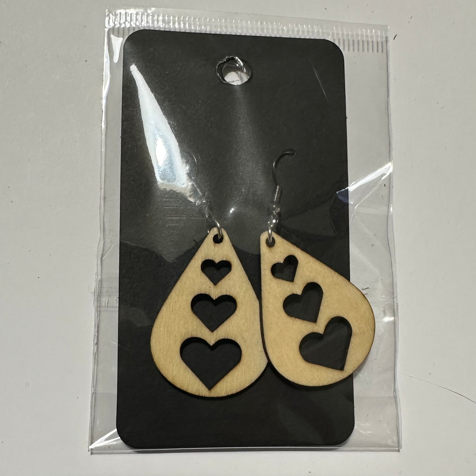 Puiset laserleikatut korvakorut. Koukut allergeeni vapaapa terästä. Korkeus noin 35mm.