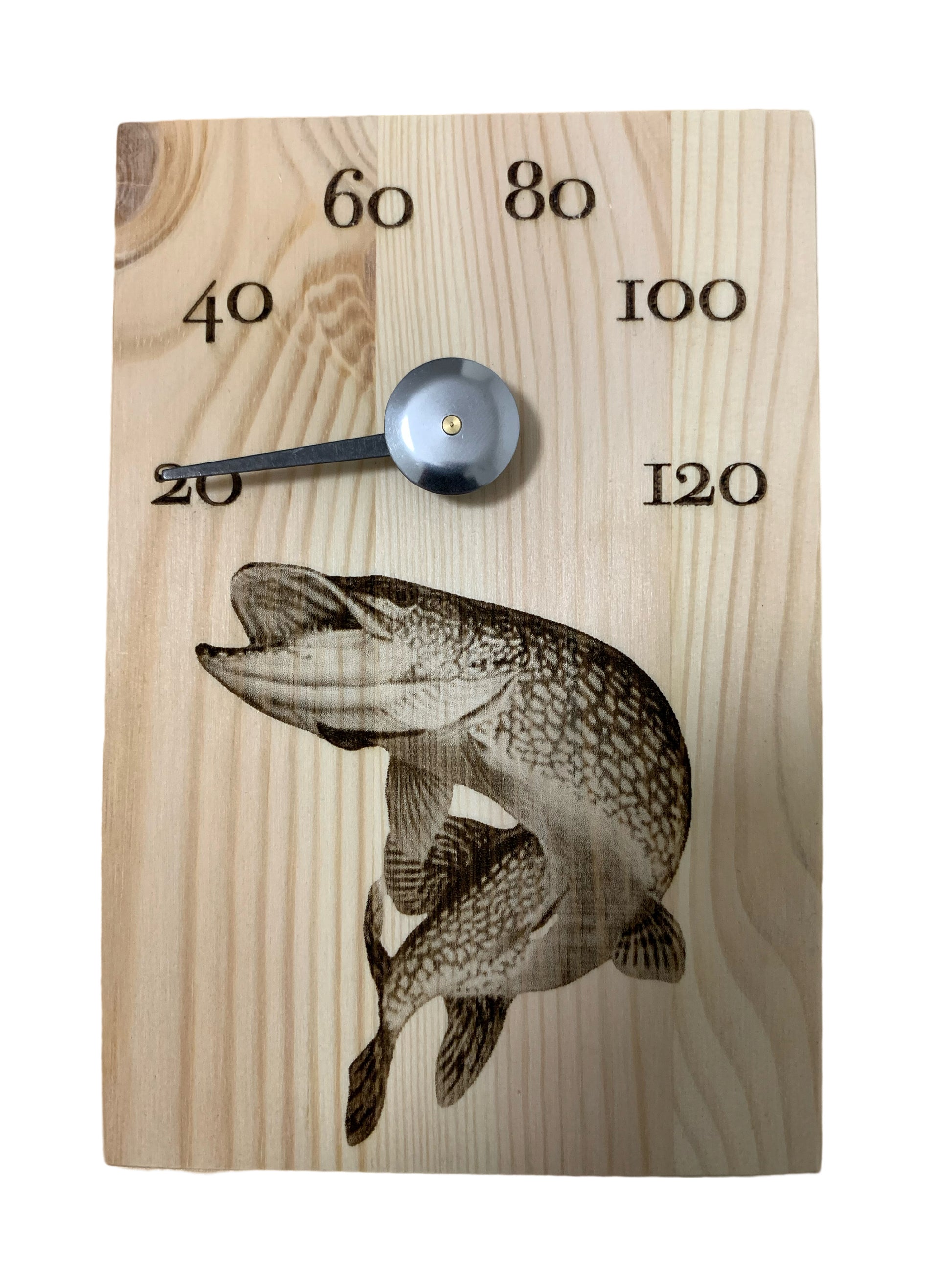 Saunamittari koko 120x180mm. Kuvat on tehty saunamittariin laser kaiverruksena.