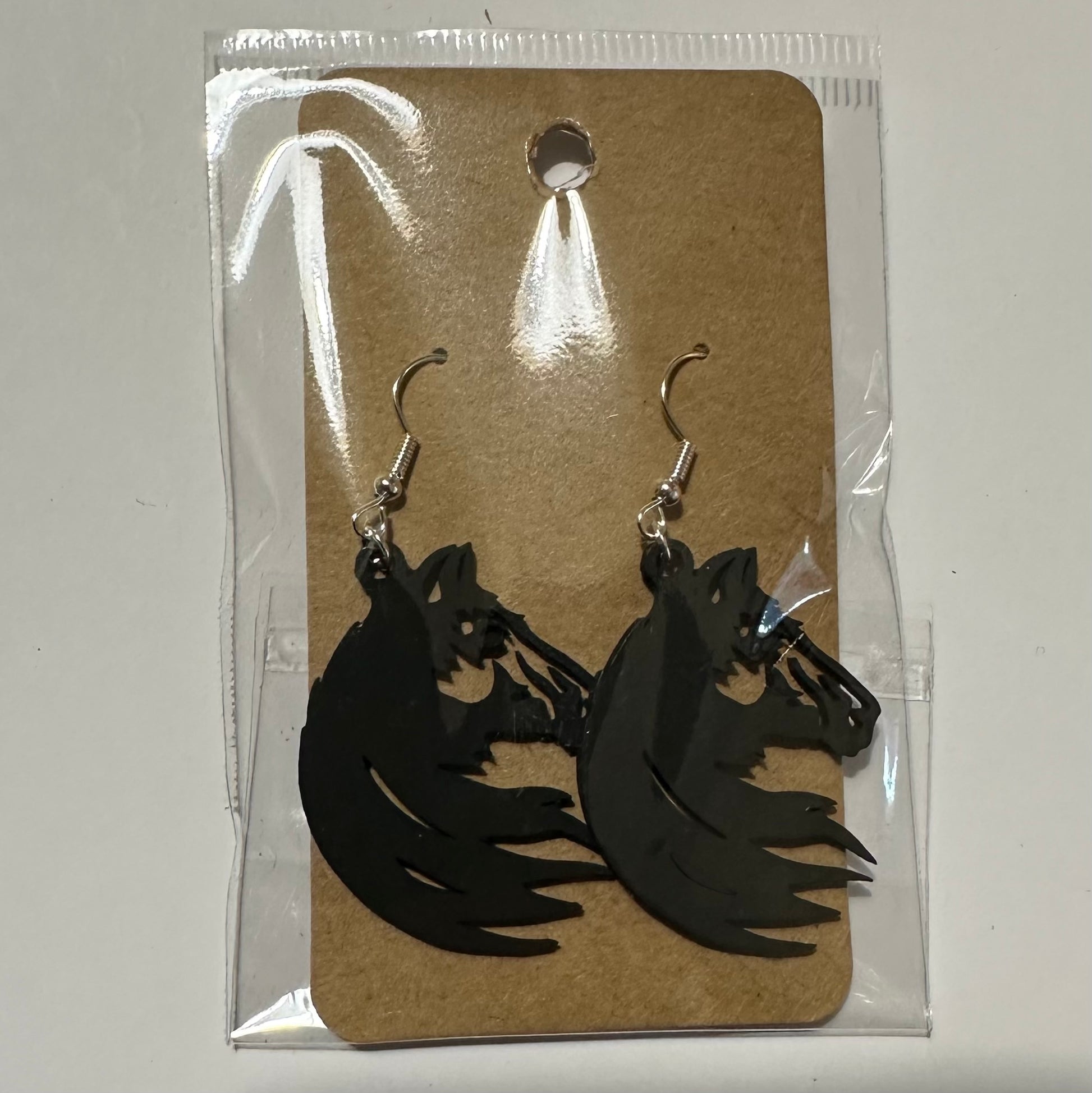 Puiset laserleikatut korvakorut. Koukut allergeeni vapaapa terästä. Korkeus noin 40mm.