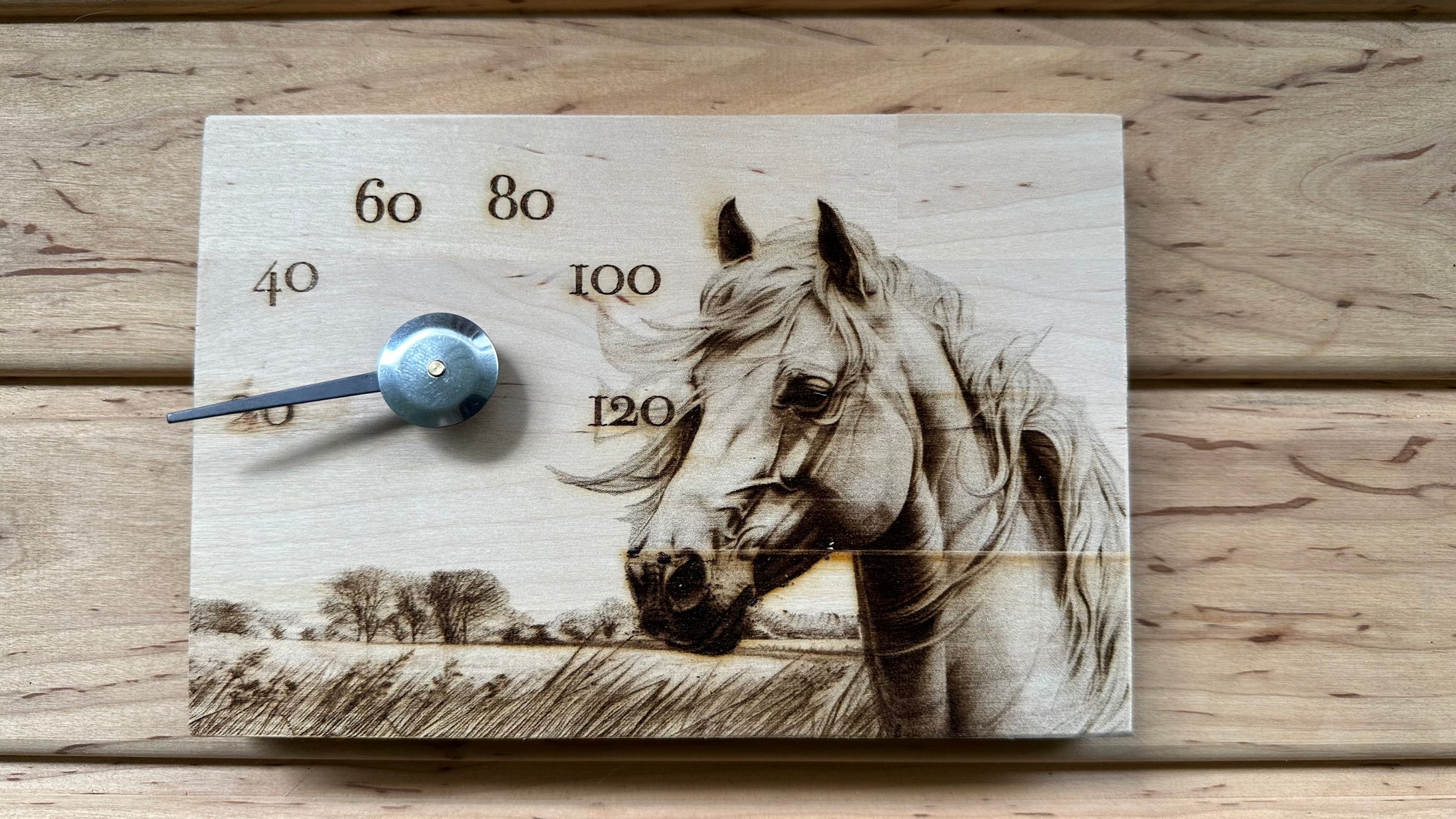 Saunamittari koko 180x120mm. Kuvat on tehty saunamittariin laser kaiverruksena.
