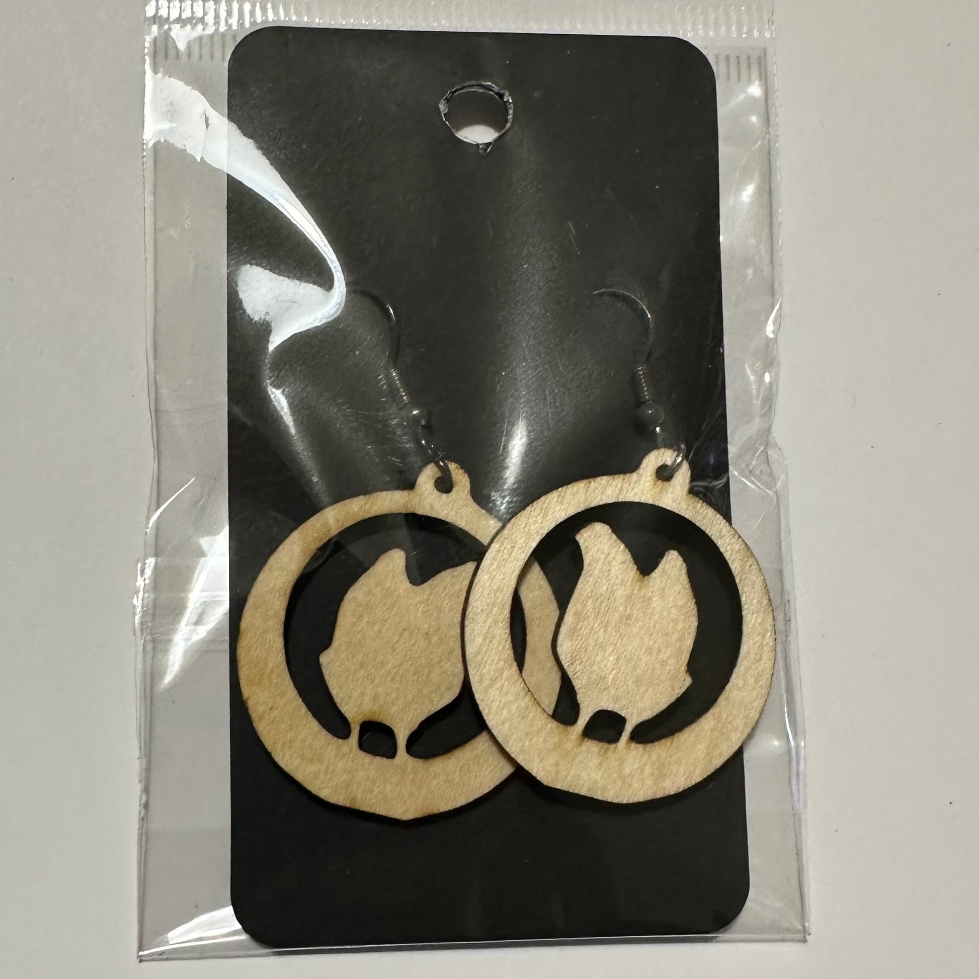 Puiset laserleikatut korvakorut. Koukut allergeeni vapaapa terästä. Korkeus noin 30mm.