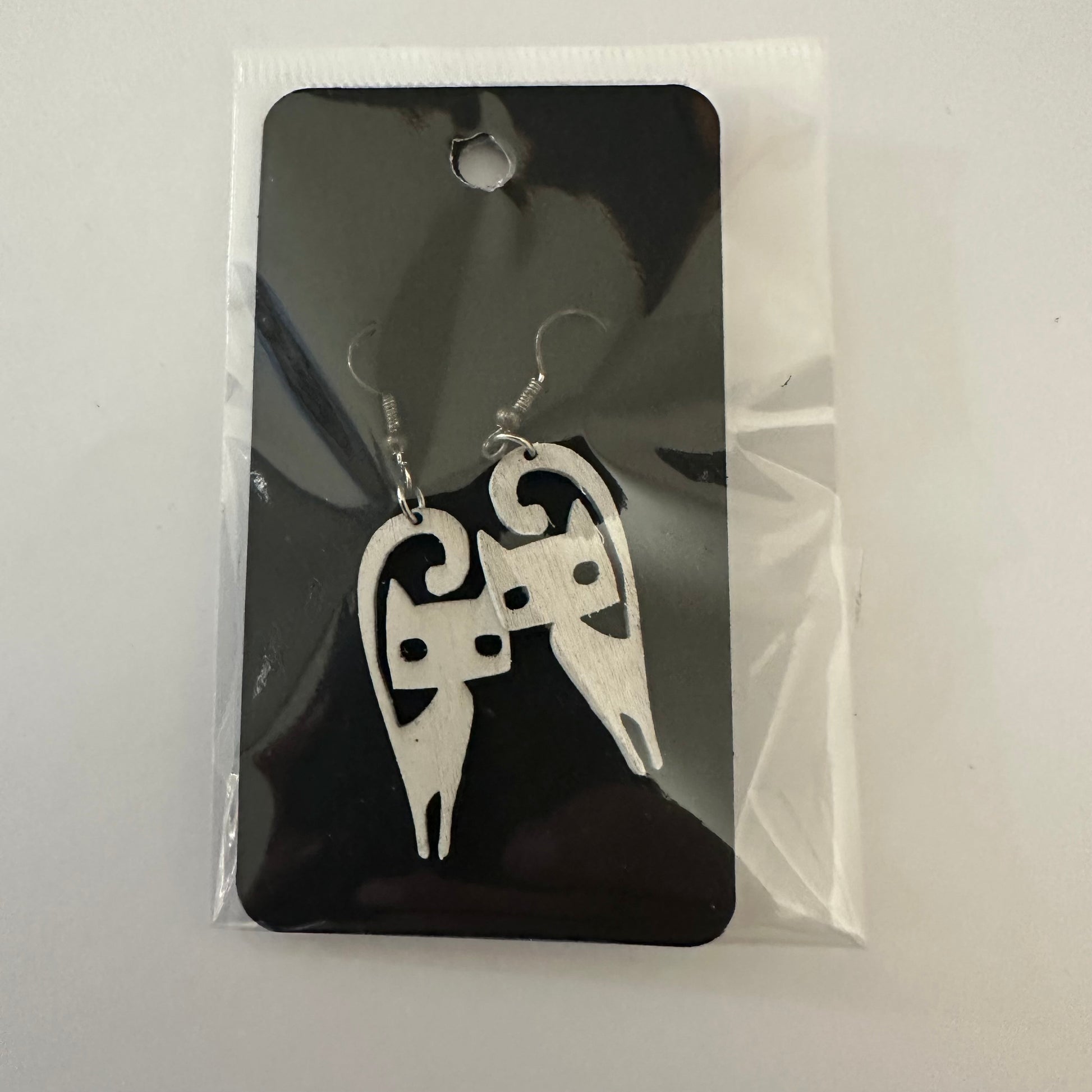 Puiset laserleikatut korvakorut. Koukut allergeeni vapaapa terästä. Korkeus noin 25mm.
