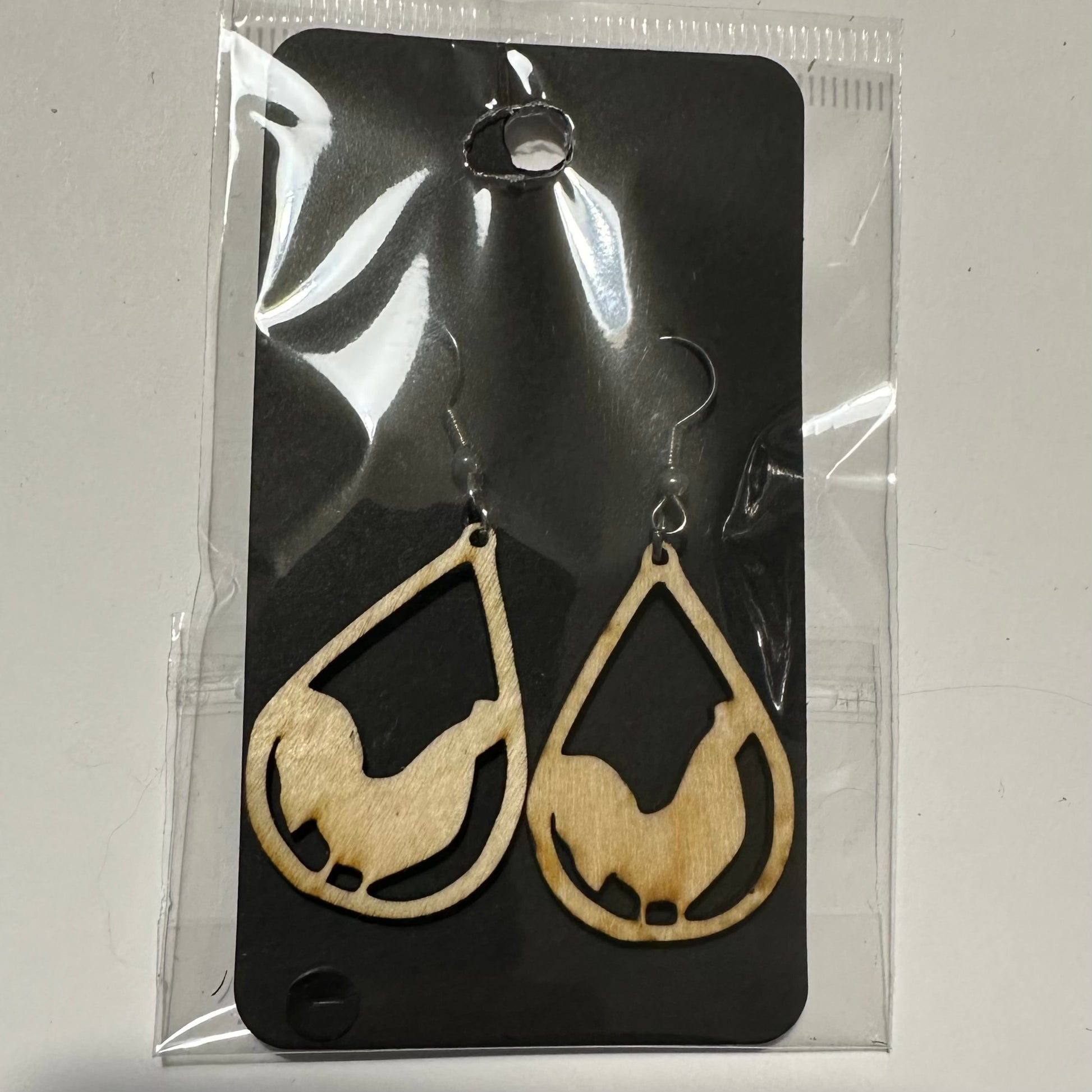 Puiset laserleikatut korvakorut. Koukut allergeeni vapaapa terästä. Korkeus noin 35mm.