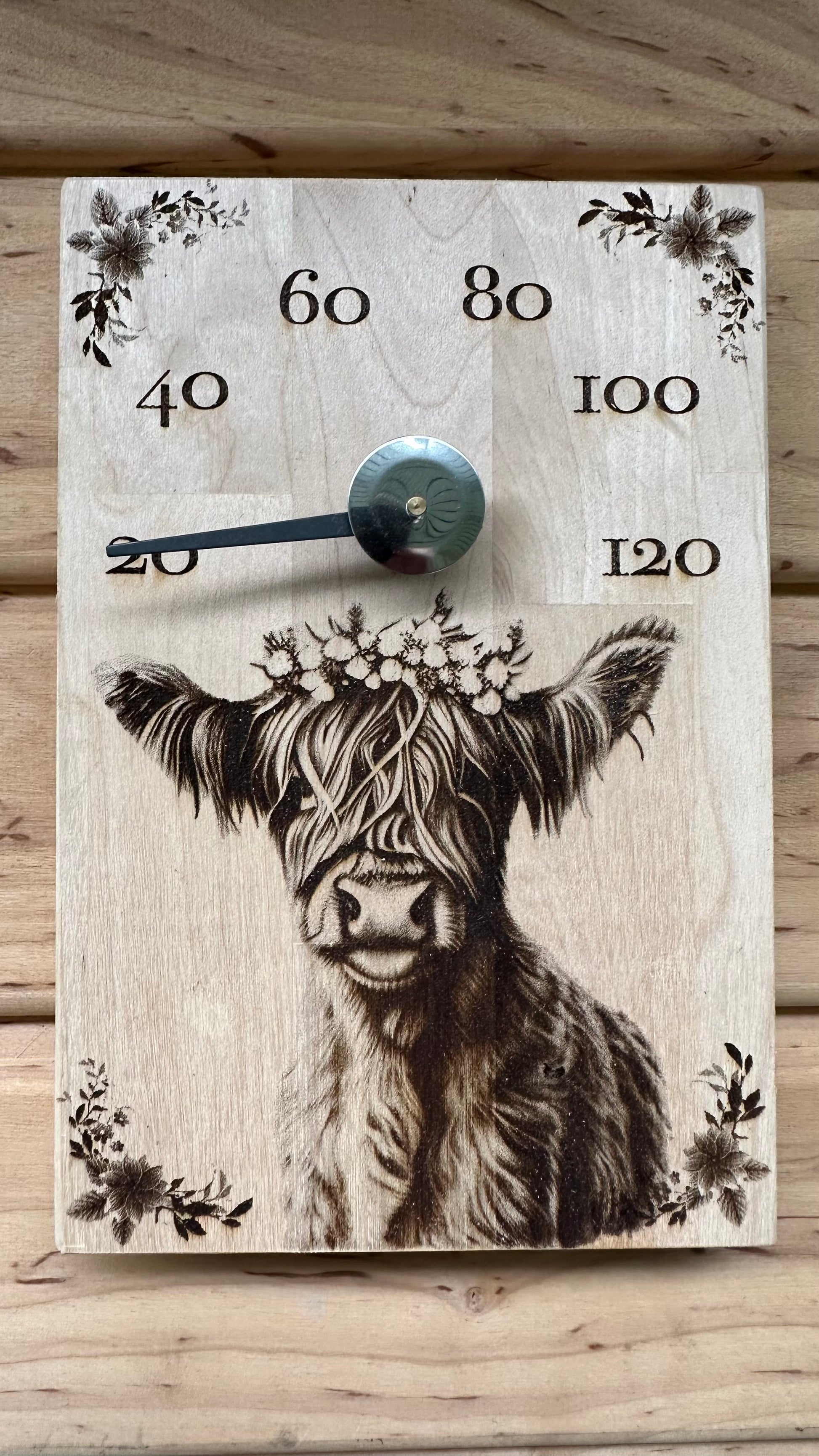 Saunamittari koko 180x120mm koivua. Kuvat on tehty saunamittariin laser kaiverruksena.