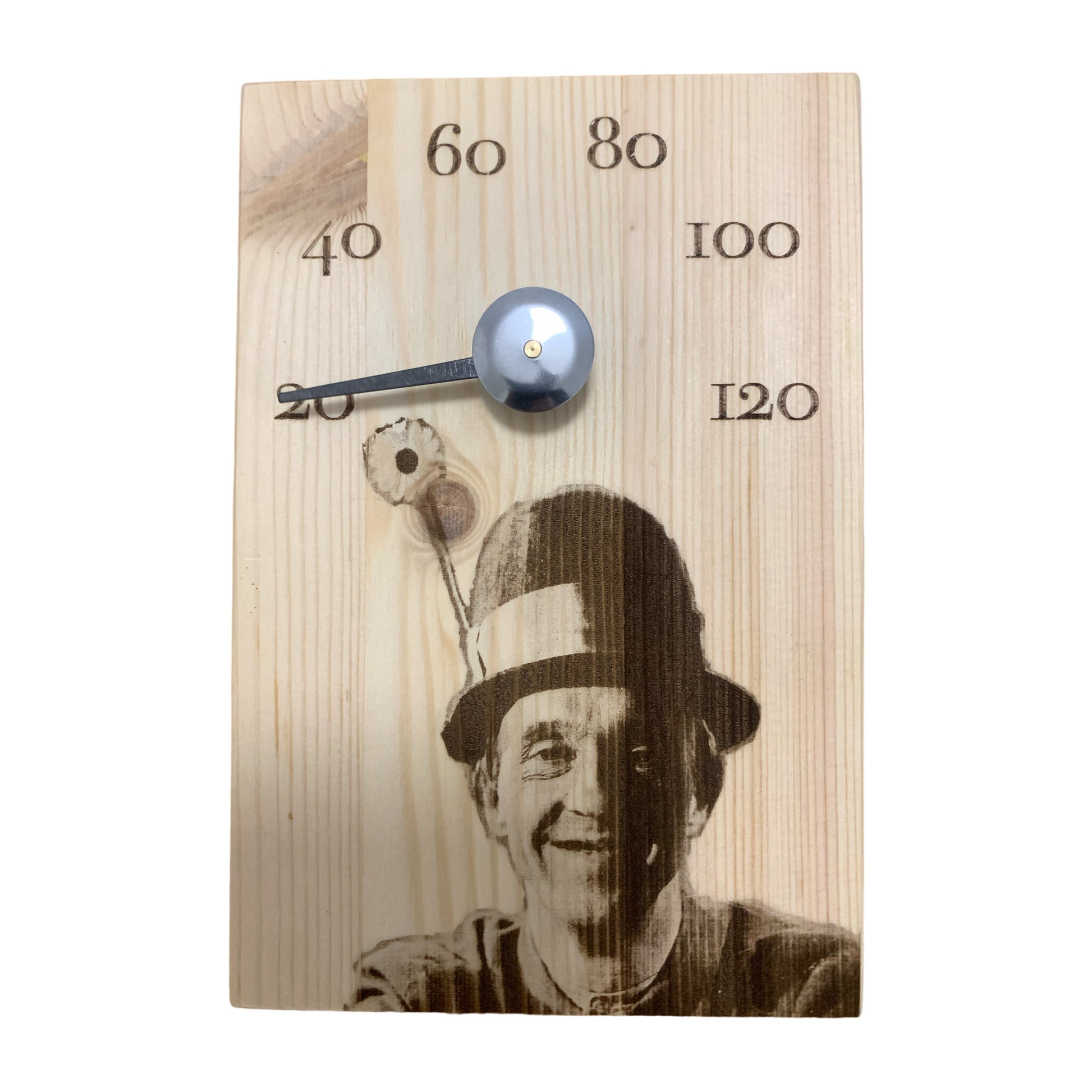 Saunamittari koko 120x180mm. Kuvat on tehty saunamittariin laser kaiverruksena.