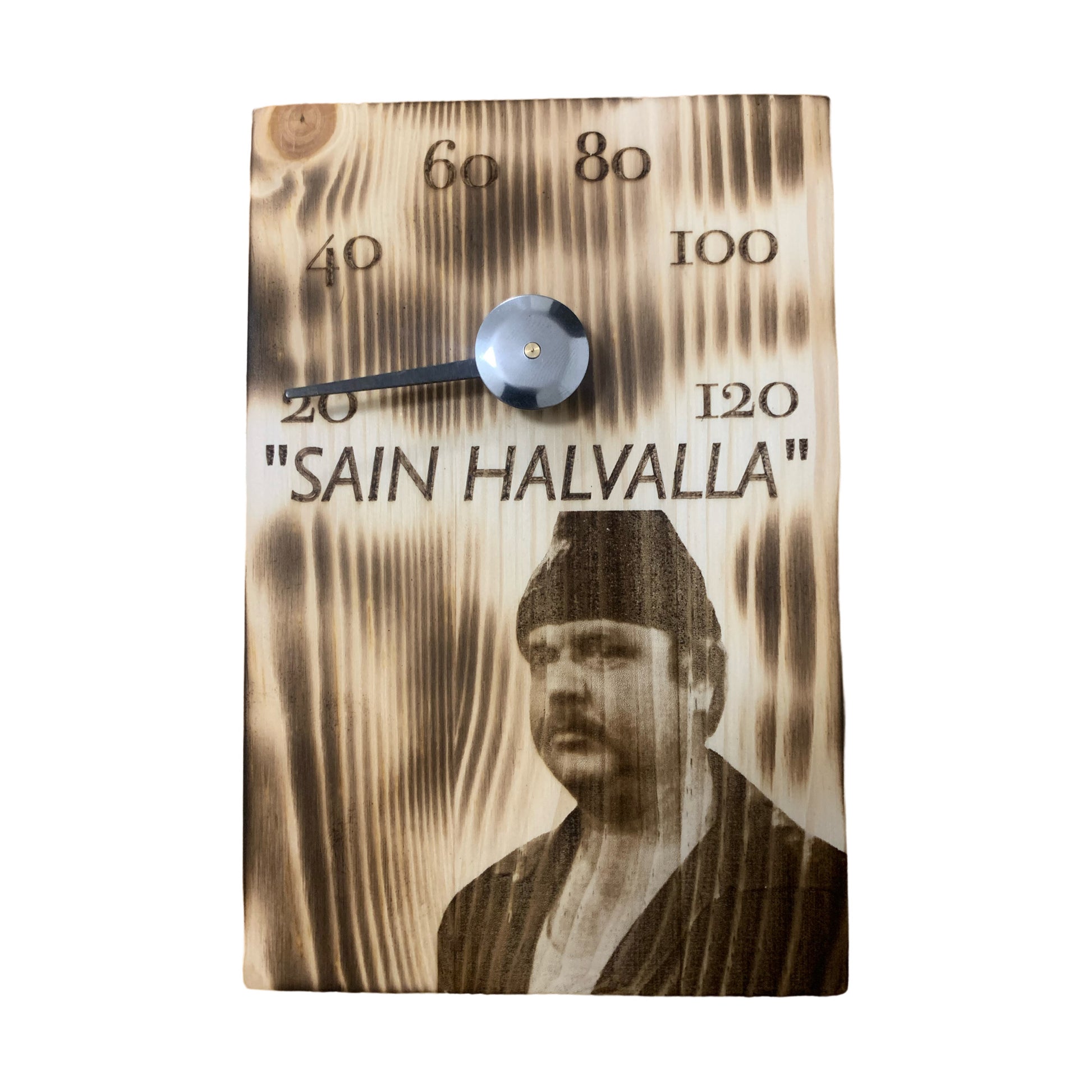 Saunamittari koko 120x180mm. Kuvat on tehty saunamittariin laser kaiverruksena.