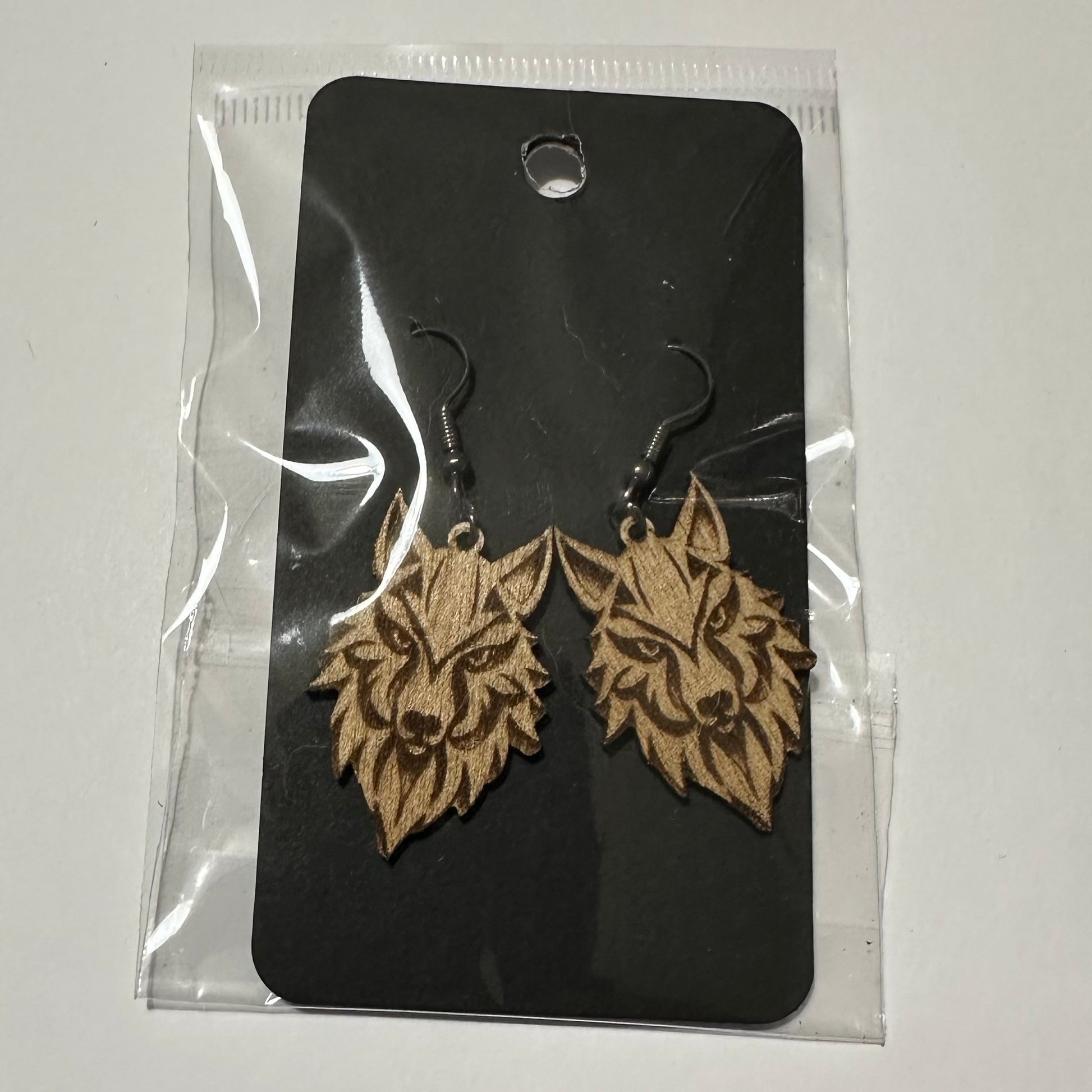 Puiset laserleikatut korvakorut. Koukut allergeeni vapaapa terästä. Korkeus noin 30mm.